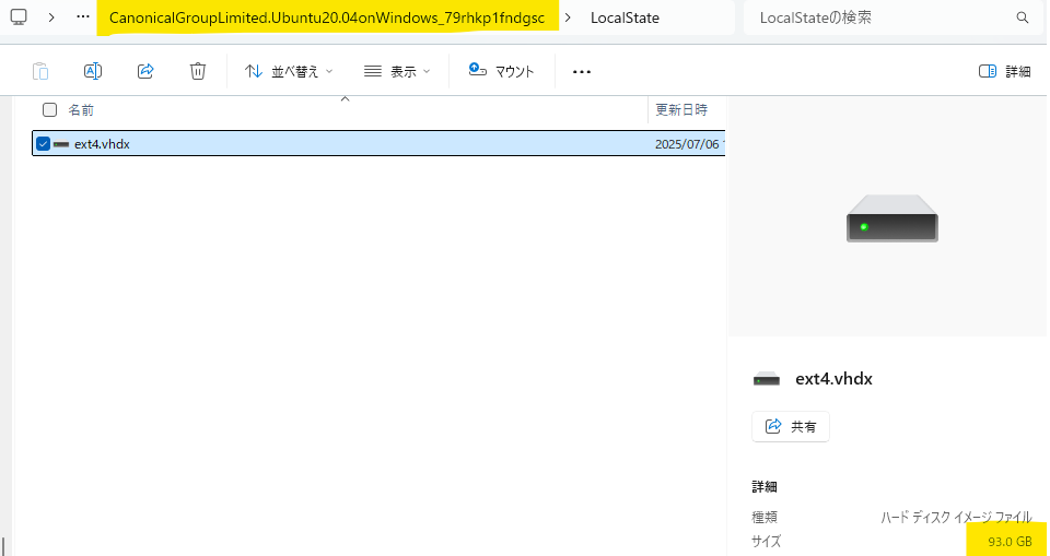 にext4.vhdxがあって、これがかなりの容量を占めていました。