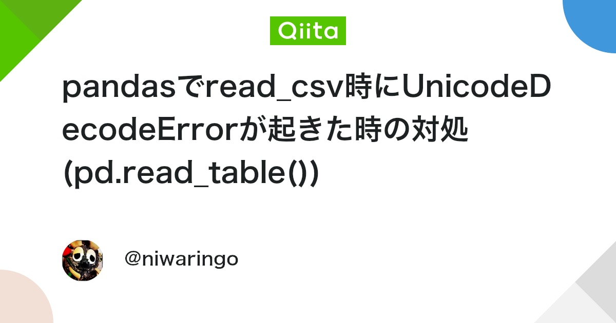 pandasでread_csv時にUnicodeDecodeErrorが起きた時の対処 (pd.read_table()) - Qiita