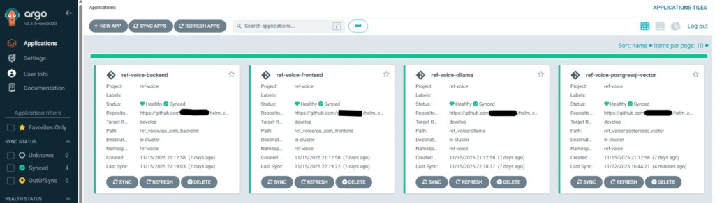 secret/helm-contents-cred labeled以下のようにApplicationsに各ApplicationができていたらOKです。