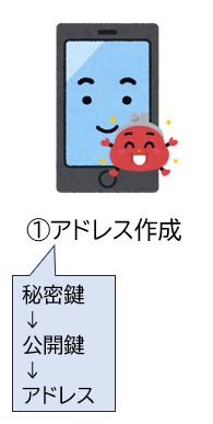 アドレスは秘密鍵から「秘密鍵 → 公開鍵 → アドレス」のように求められます。