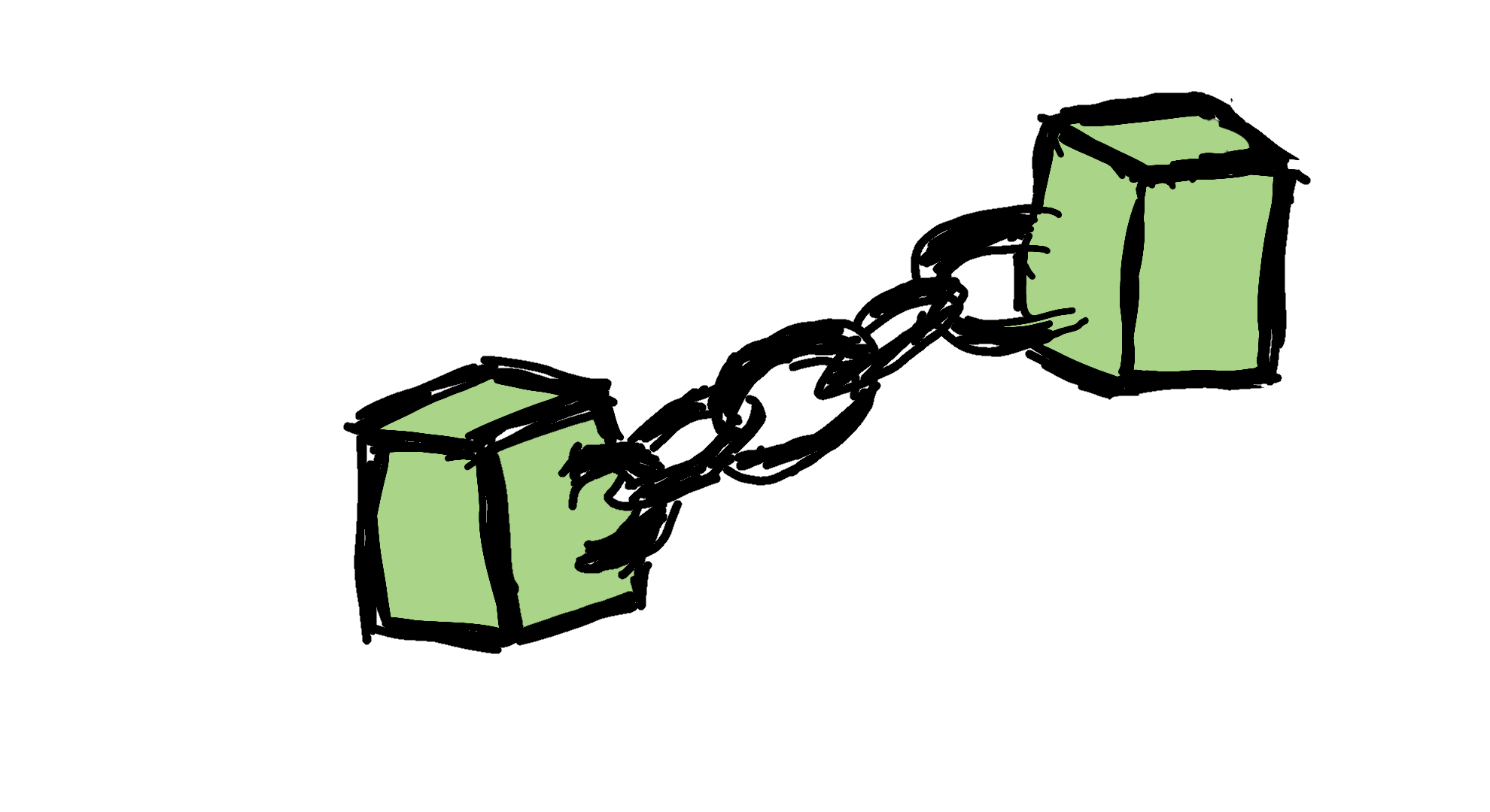 ブロックチェーンは取引記録をまとめた「ブロック」を、鎖のようにつなげた台帳になります。