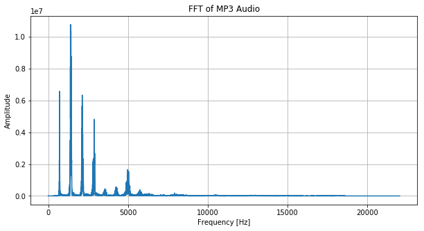 この猫の鳴き声をフーリエ変換にかけると以下のようなグラフになります。