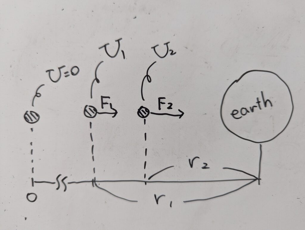 無限遠方を基準に置いており、引力によって引っ張られている対象からすると、まず、$U_1$に関しては、元の基準に戻ろうとするには別の外部から力をかける必要があります。