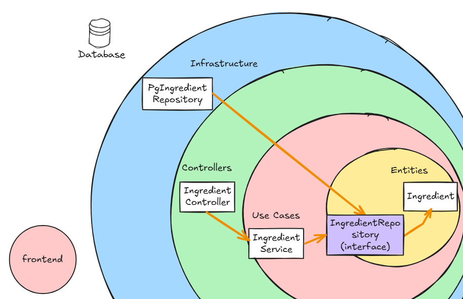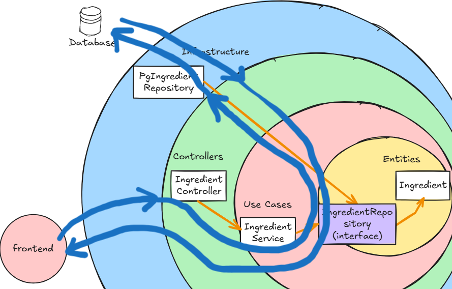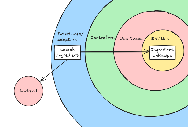 backendをClean Architectureの図に落とし込むと以下のような図になっています。