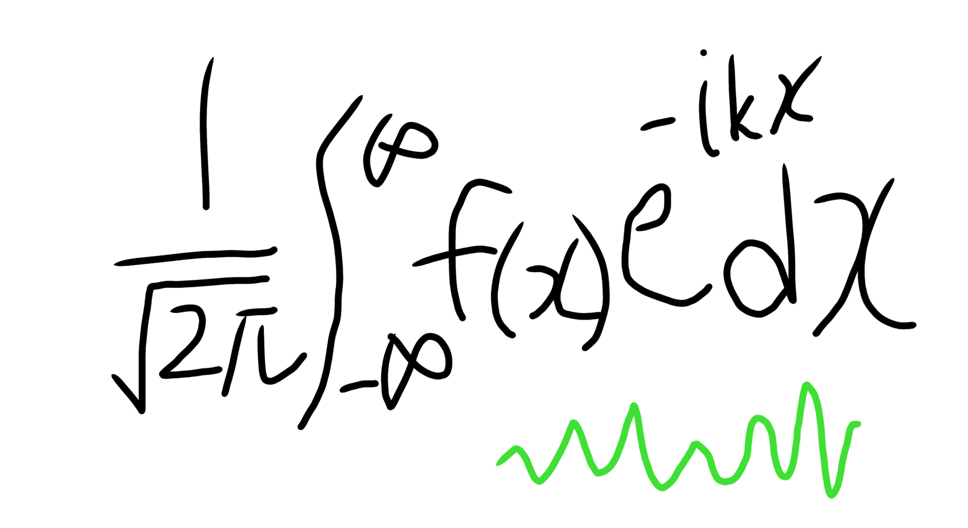 $$ F(k) \equiv \frac{1}{\sqrt{2\pi}}\int_{-\infty}^{\infty} {f}(x)e^{-ikx}\, dx $$